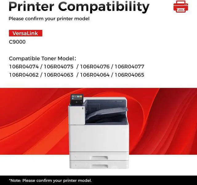 Compatible Printer: Compatible for Xerox VersaLink C9000 Printer. Compatible Toner Model106R04074,106R04075,106R04076,106R04077,106R04062,106R04063,106R04064,106R04065.