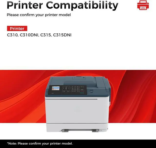 Compatible Printer: Compatible for Xerox C310 C310DNI Color Printer, Xerox Versalink C315 C315DNI Color Multfunction Printer, Compatible Toner Model006R04364, 006R04365, 006R04366, 006R04367.