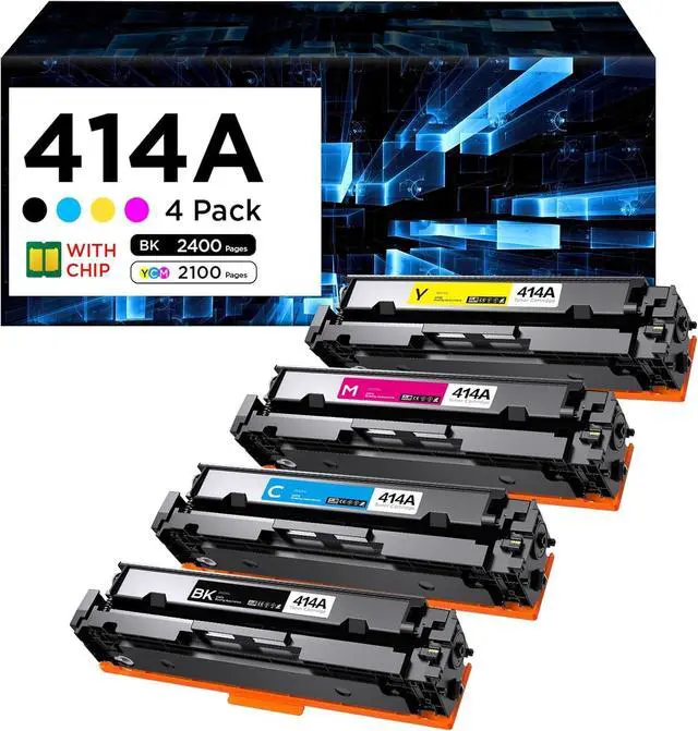 With Chip: Compatible 414A toner cartridges 4 pack are already installed with chips, so no extra steps or chip handling are required during installation