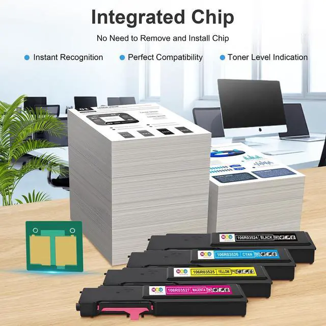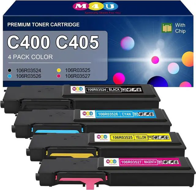 Package Content: 4-Pack C400/405 toner cartridges, 1 x black 106R03524, 1 x yellow 106R03525, 1 x cyan 106R03526, 1 x magenta 106R03527