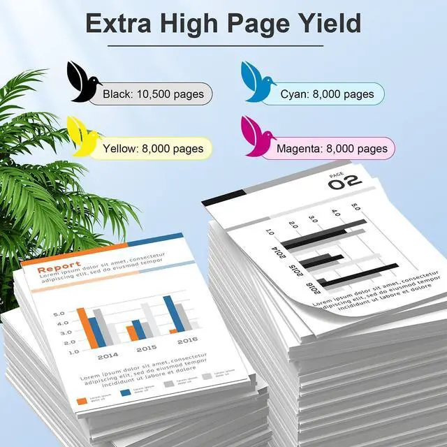 High Page Yield: Up to 10,500 pages per pack black toner, and 8,000 pages per pack color toner(cyan yellow magenta) at 5% coverage (Letter/A4)