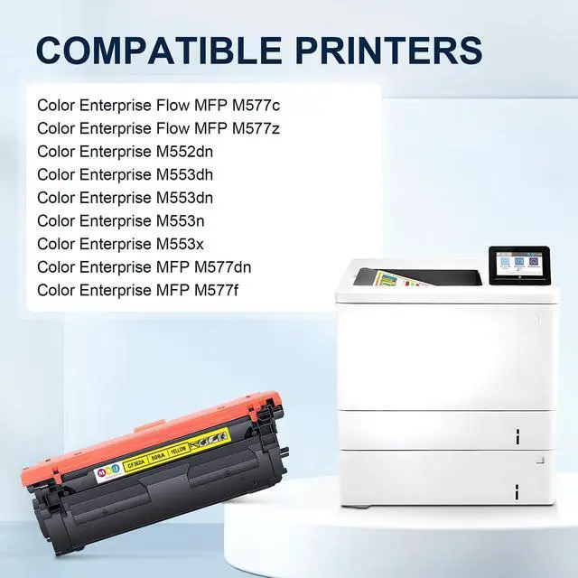 Compatible Printers: The 1 Pack 508A yellow toner cartridge set is compatible for Color Enterprise M553n M553nh M553dn M552dn M553x, Color Enterprise flow MFP M577c M577z, Color Enterprise MFP M577dn, M577f