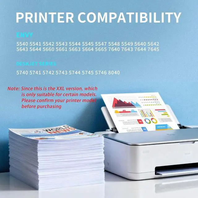 Compatible Printers: Compatible with HP ENVY 5540 5541 5542 5543 5544 5545 5547 5548 5549 5640 5642 5643 5644 5660 5661 5663 5664 5665 7640 7643 7644 7645 Printers