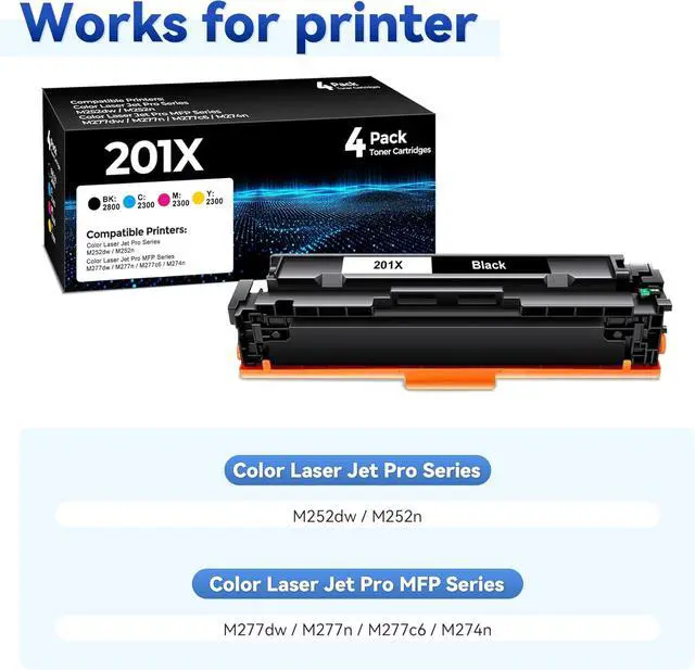 W.L.M 201X toner cartridge 4 pack compatible with 201X 201A HP201X CF400X CF401X CF402X CF403X black/cyan/magenta/yellow toner cartridge with chip Compatible with Laser jet Pro MFP M277dw,MFP M277n, MFP M277c6, M252dw, M252n, M277, M252 series printer
