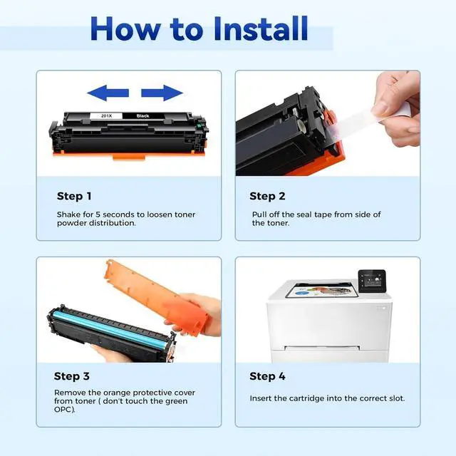 Package Contents: 4 Packs 201X toner cartridge replacement for HP201X 201X CF400X CF401X CF402X CF403X high yield toner cartridge