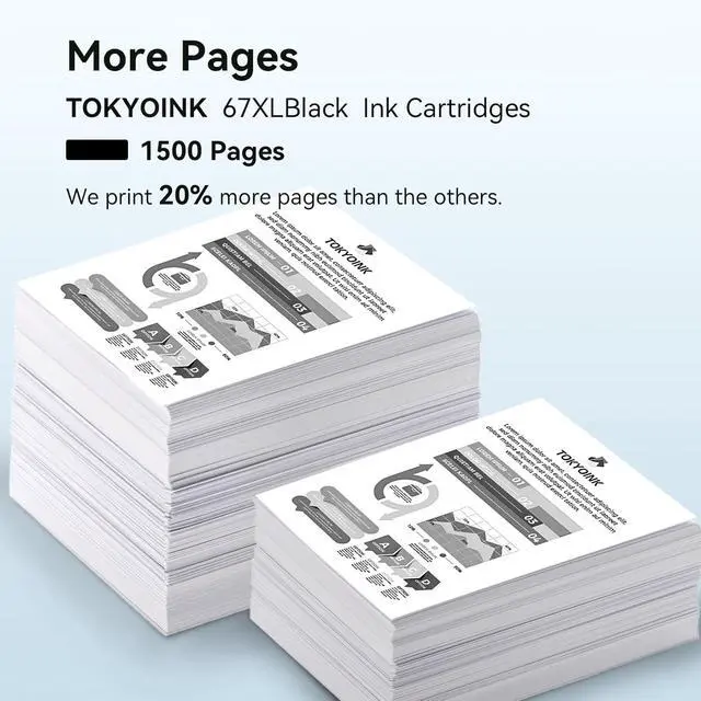 Outstanding Performance: Replacement for hp 67xl ink cartridges black/color combo pack delivers high-quality printing a- sharp text, vibrant colors and true-to-life pictures, comparable to original cartridges. Choose TOKYOINK for printer ink hp 67 ink cartridges with significant cost savings without compromising on print quality!