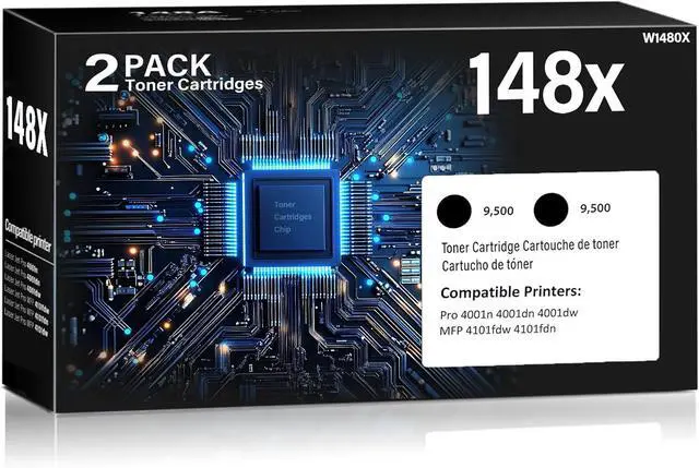 Package Included: 2-Pack 148X W1480X Black High Yield Toner Cartridges Toner Cartridge with chip. Compatible for HP 4001n, MFP 4101fdw, 4001dn, 4001dw, MFP 4101fdn printers. Compatible with HP 148X 148A W1480X W1480A Toner Cartridges