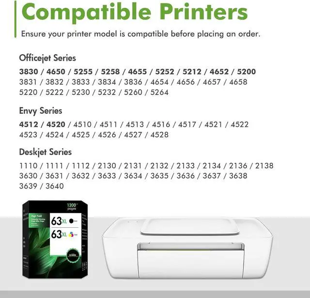 Package Content: 63 63XL Ink Cartridge Combo Pack (1 × 63XL Black, 1 × 63XL Tri-color, 1 × User Guide