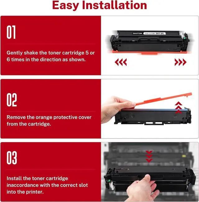 • With Chip Version: Each 067 toner cartridge is equipped with an advanced chip, enabling seamless printer recognition. Enjoy effortless installation and quick, reliable recognition.
