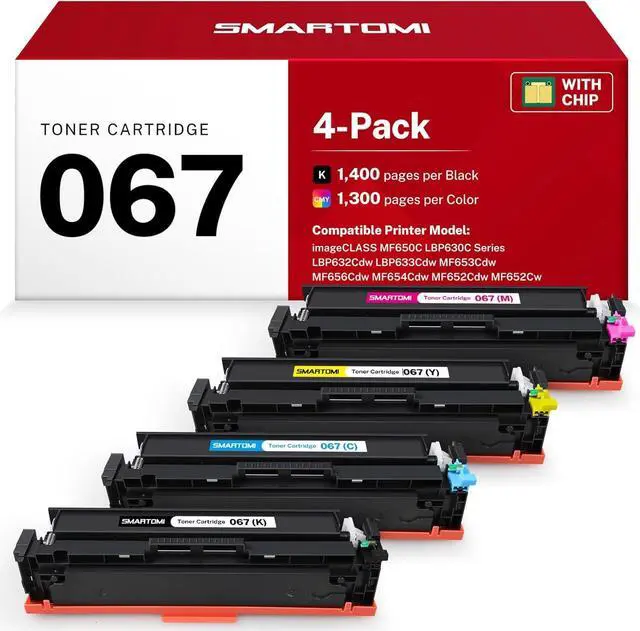 • What you will receive: 1 new Compatible 067 Black Toner Cartridge, 1 new Compatible 067 Yellow Toner Cartridge, 1 new Compatible 067 Magenta Toner Cartridge, 1 new Compatible 067 Cyan Toner Cartridge