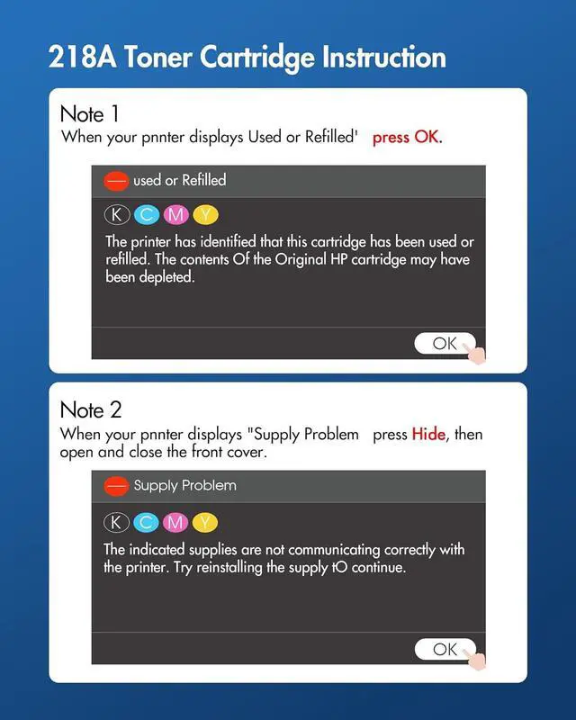 Excellent Performance: 218A toner replacement for hp 218a toner cartridges 4 pack for a fast, high-quality, and reliable printing experience. Save time by avoiding common printing problems such as streaks, smudges, and leaking