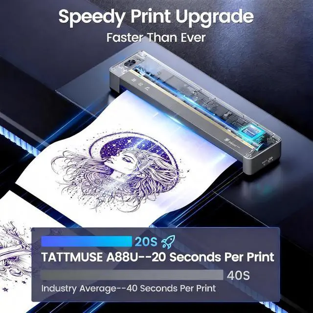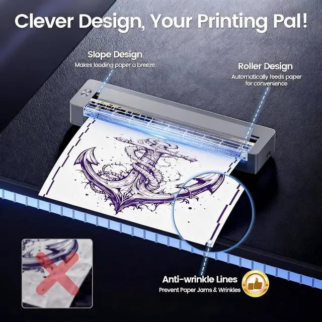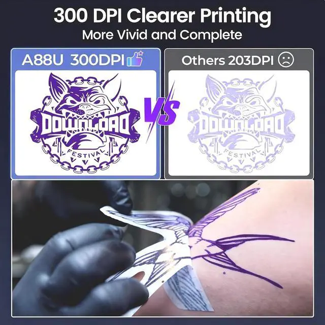 TATTMUSE tattoo stencil printer has the most advanced wrinkle resistant printing technology, and the upgraded body structure results in less noise during printing.