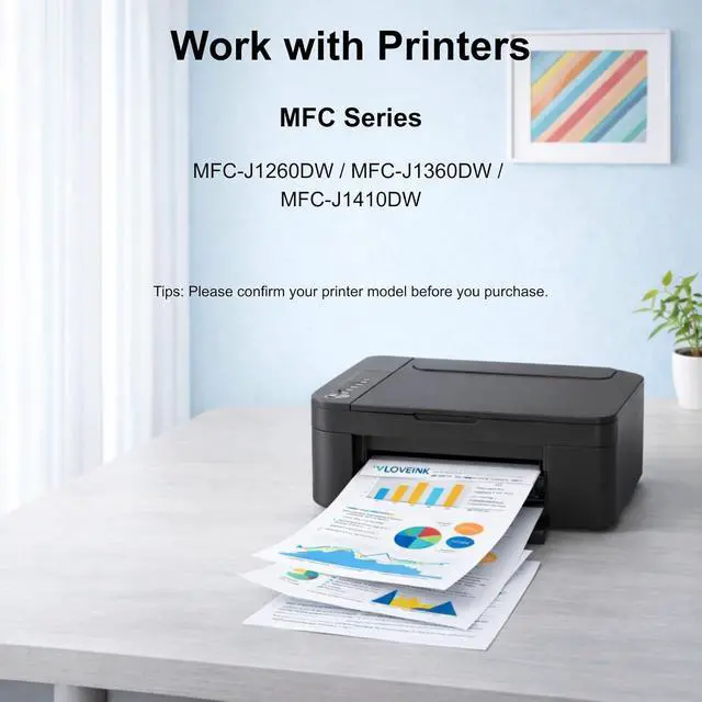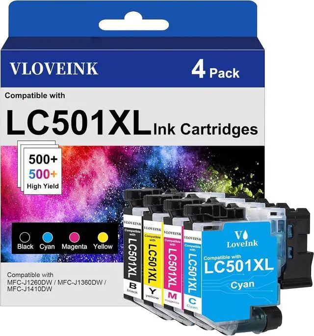 Compatible Printers: VLOVEINK Compatible LC501XL Ink Cartridges Compatible with Brother MFC-J1360DW MFC-J1260W MFC-J1410DW printers. Suitable for office and home use (Non-OEM Cartridge)