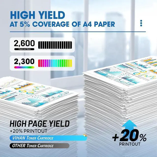 High Page Yield: Up to 2,600pages per 414A Black Toner Cartridge, 2,300 pages per 414A Cyan Magenta Yellow Toner Cartridge (Letter/A4, at 5% Coverage).