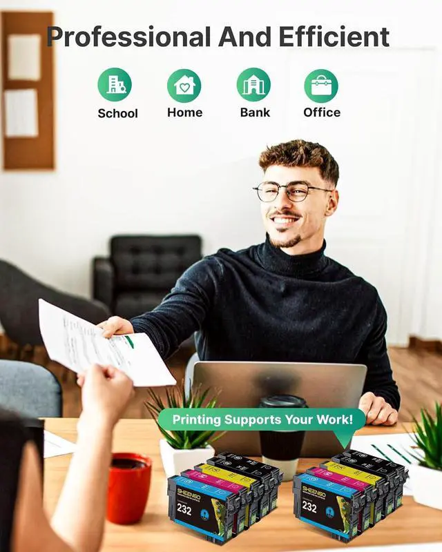 3. Page Yield: Up to 380 pages per for epson 232 black ink cartridge, 140 pages per for epson ink 232 color ink cartridges (Letter/A4, at 5% coverage)