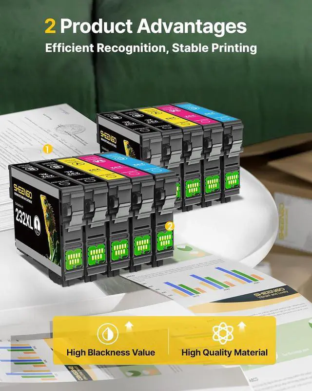 1.Latest Upgraded Chips: Replacement for epson 232 ink cartridge for 232XL ink cartridges for epson printer equipped with the latest chip version to ensure full working compatibility with your printer