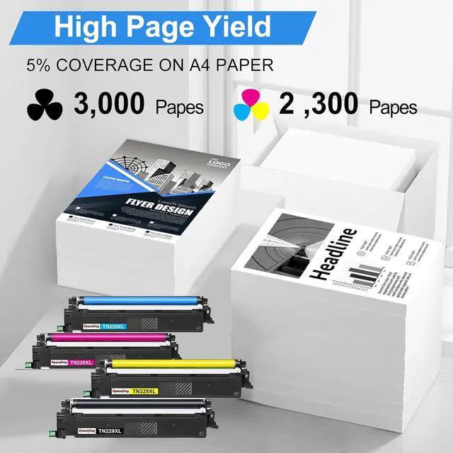 Page YieldUp to 3,000 pages for TN229 XL black toner TN229XLBK and 2,300 pages for TN229 XL(C/M/Y) toner TN229XLC TN229XLM TN229XLY (Letter/A4, at 5% coverage)