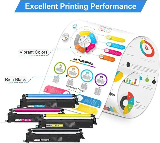 Printing PerformanceTN229XL TN229 Toner Cartridges are strictly manufactured to ensure the premium print quality, which offers accurate colors and long-lasting texts, bringing every detail to life