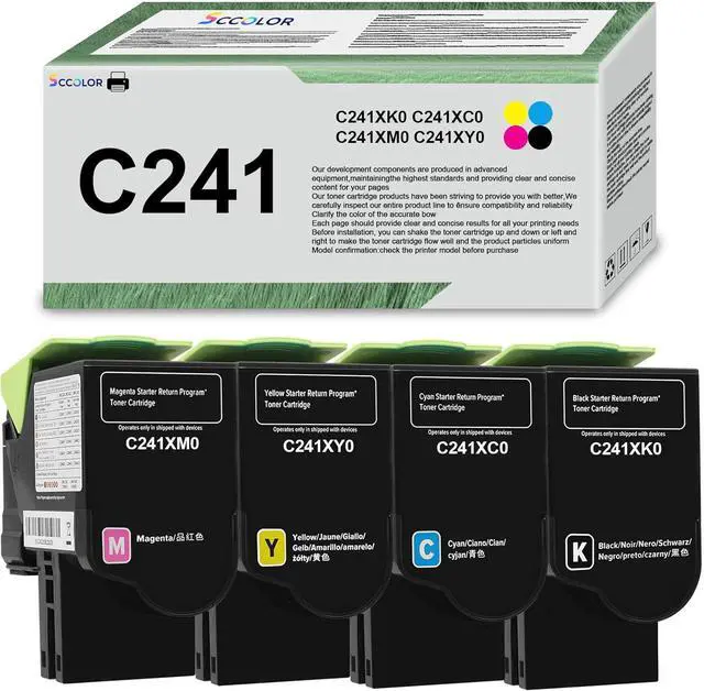 • Package Contents:4 Pack C241 Black Magenta Yellow Cyan Toner Cartridge