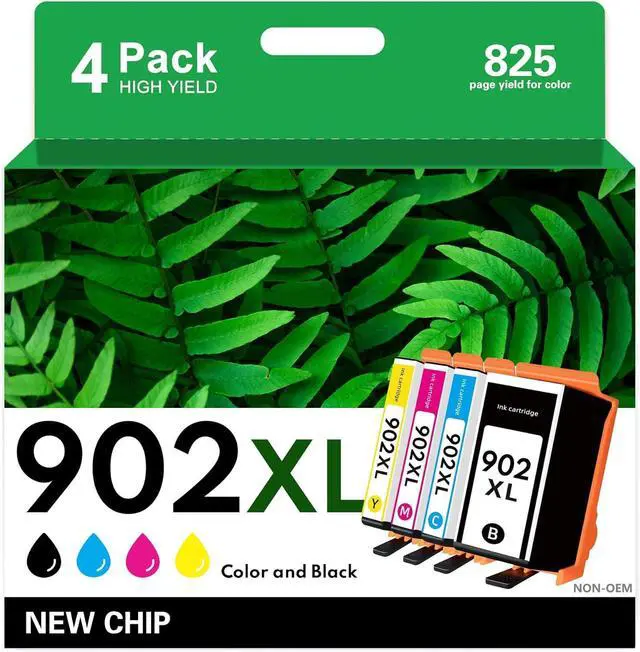 Complete 4-Pack Combo: The 902XL ink cartridges combo pack includes 1 x Black 902 XL, 1 x Cyan 902 XL, 1 x Magenta 902 XL, 1 x Yellow 902 XL (4 cartridges in total)covering all your printing needs in one convenient set.