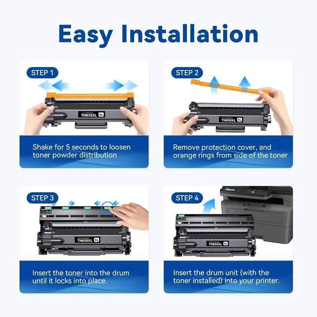 Each TN830XL toner cartridge delivers sharp Texts, vivid Images and outstanding quality.