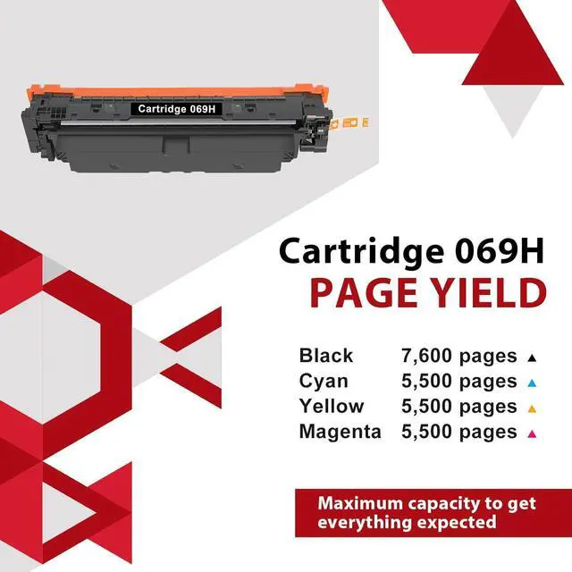 High Page Yield: 7,600 pages (black toner) and 5,500 pages (color toner) at 5% coverage (Letter A4) compatible for 069H toner cartridge set