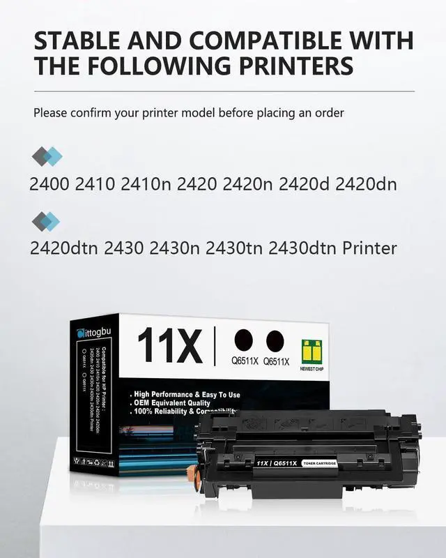 Compatible with printers: 11X Q6511A Black toner 2400 2410 2410n 2420 2420n 2420d 2420dn 2420dtn 2430 2430n 2430tn 2430dtn Printers