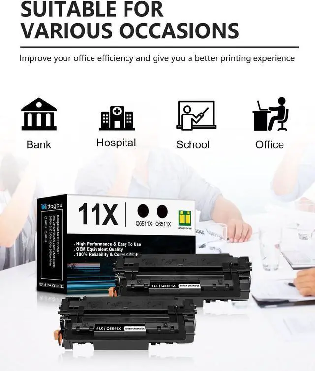 Product in the box: 2 Packs 11X toner, 11X Q6511X 11A Q6511A toner (Black)