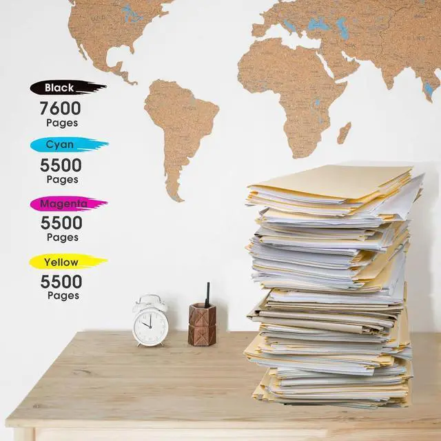High Page Yield : 7,600 pages for Black toner, 5,500 pages for each color toner (5% coverage of A4 paper)