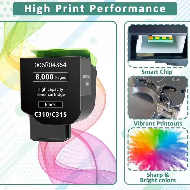 • Compatible Printer:C315 toner cartridge Compatible for Xerox C310 C310DNI color printer and C315 C315DNI color multifunction printer.