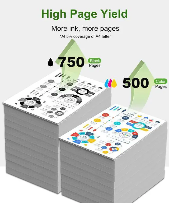 High Page Yield for Extended Use: Achieve up to an estimated 750 pages with the 67XL black ink cartridge and 500 pages with the 67XL color ink cartridge under standard 5% page coverage conditions, offering long-lasting value for everyday printing needs.