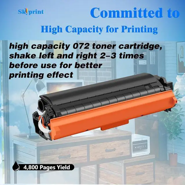 SkyPrint CRG-072 black toner cartridges come with intelligent chips that automatically recognize and provide printing , Not damaging the machine,Shake the toner cartridge horizontally 2-3 times before use to evenly distribute the toner,providing you with better clear and natural printing effects