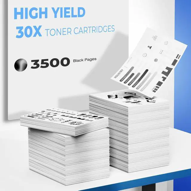 High Page Yields: 3,500 pages per 30X black toner cartridges, 7,000 pages in total at 5% coverage for A4 paper
