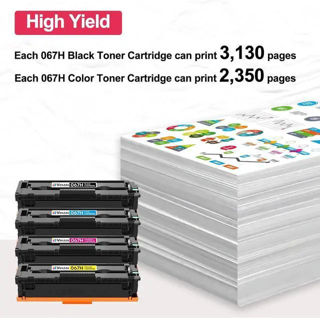 High page yield: 3,130 Pages for 067 067H black toner cartridge and 2,350 Pages for 067 067H color toner cartridge at 5% coverage