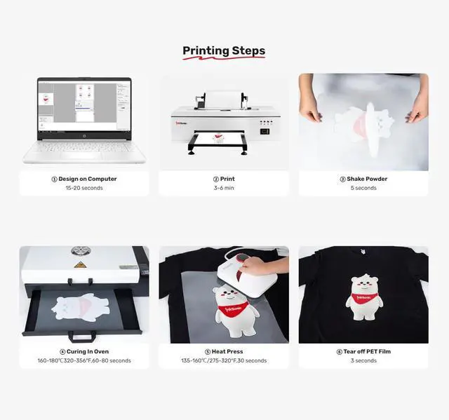 InkSonic Premium DTF Ink Store the package in a cool and dry place Effectively Clears Clogged Printheads & Protects Healthy Ones Compatible with All DTF Printers DTF Printer Application Fields The NO.1 Emerging Printer Brand