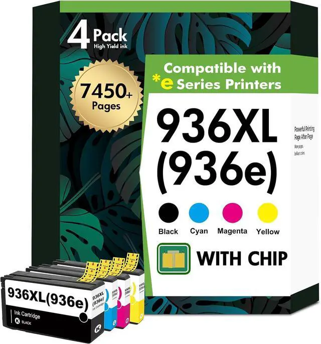 Package Content: Ink 936XL black and 936XL color combo pack (1 × 936XL Black, 1 × 936XL Cyan, 1 × 936XL Magenta, 1 × 936XL Yellow Ink Cartridge
