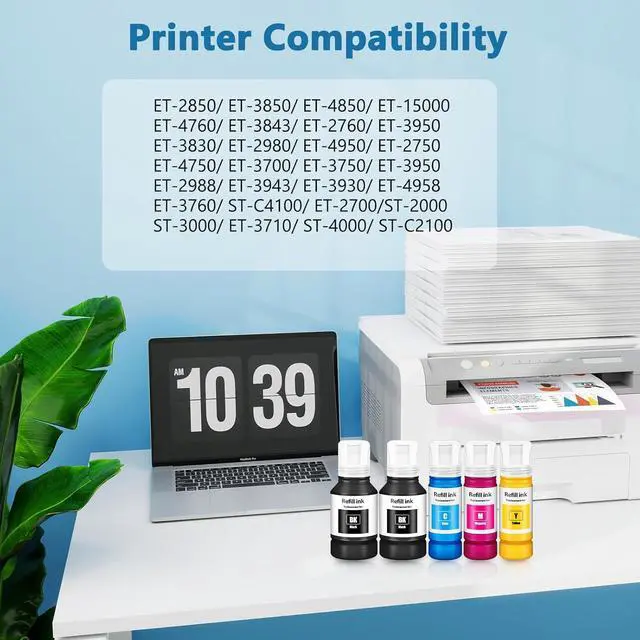 No-Mess Filling--with automatic stop-flow technology, refilling is quick and clean. Simply lift the bottle to stop the ink, no drips, no spills. Enjoy a tidy workspace and a smooth, efficient printing process.