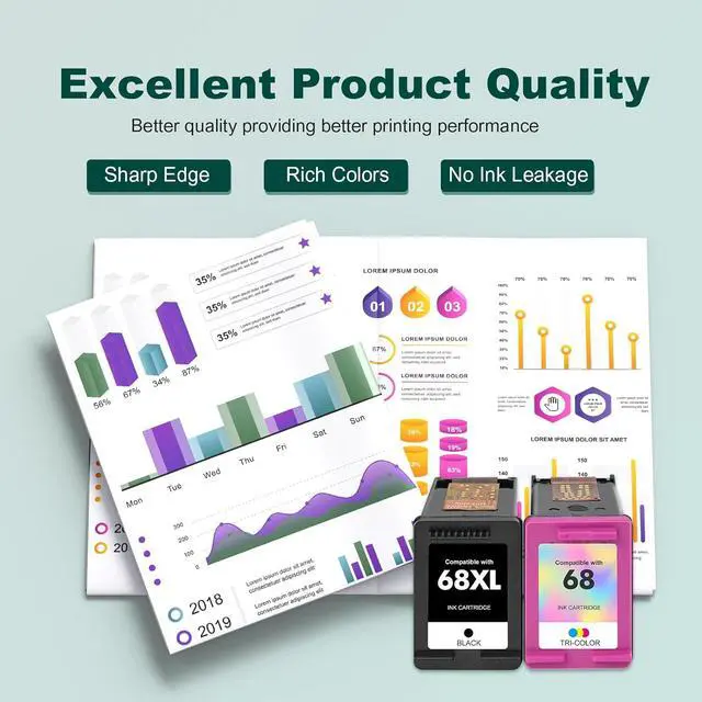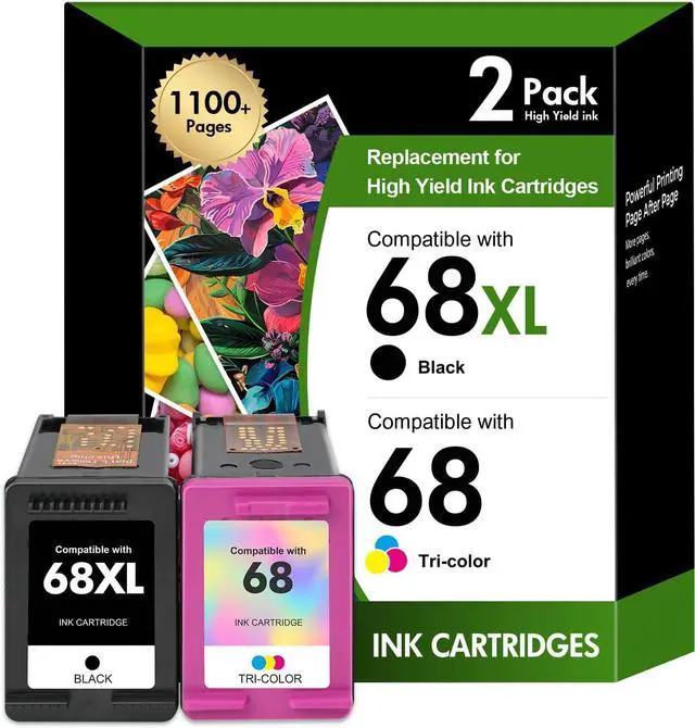 High Page Yield: 68e Black Ink Yields Up to 650 Pages,Up to 450 Pages for Each 68 Tri Color Ink Cartridges at 5% Coverage (A4e Letter)