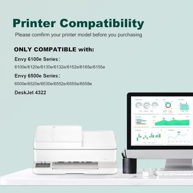 Compatible for HP Printers Envy 6100e 6500e Series6155e 6555e 6165e 6152e 6552e 6558e