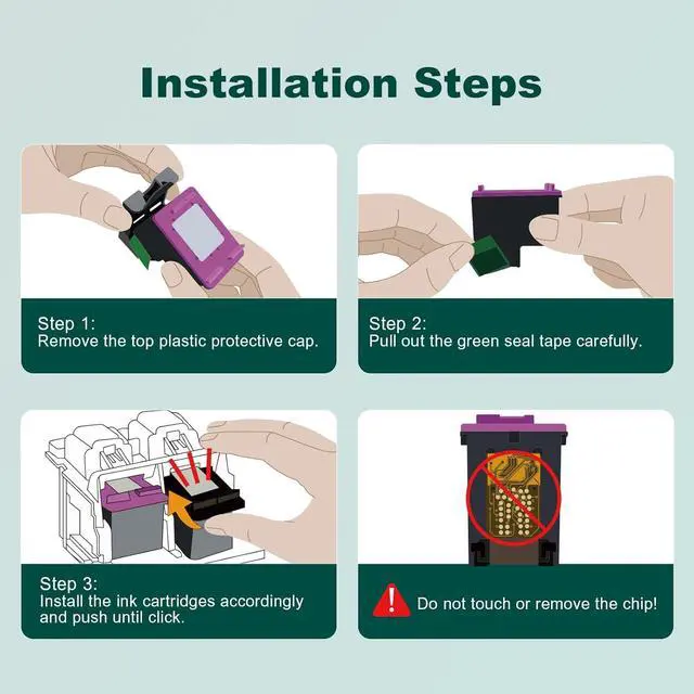 Troubleshooting steps: If the ink cartridge is not recognized or functioning properly, try these solutions:1. Clean the cartridge and printer contacts with the accompanying eraser to remove dust or debris. 2. Check and adjust printer settings to ensure proper recognition. 3. Avoid touching the chip or ink nozzles. A clogged printhead will disrupt the printing function