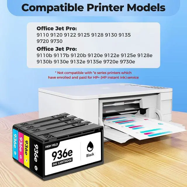 Important NoteIf your printer has enrolled the HP+ service, this 936e ink cartridge combo pack is not compatible for your printer; Please check the printer model carefully before purchasing.