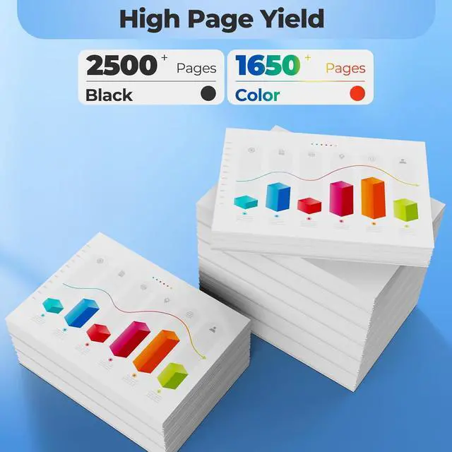 High Page Yield: Up to 2,500 pages per black ink replacement for HP 936 ink cartridges and 1,650 pages per color ink for HP 936 ink cartridges; Totally 7,450 pages at 5% coverage of A4 paper