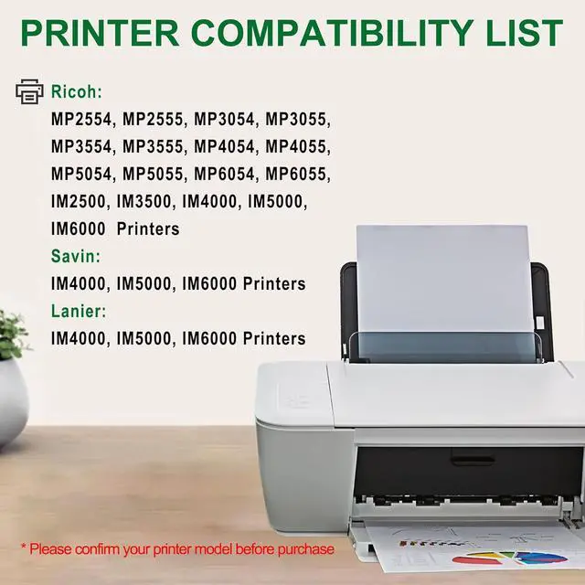 Compatible Printers: Compatible with Ricoh MP2554, MP2555, MP3054, MP3055, MP4054, MP4055, MP5054, MP5055, MP6054, MP6055, IM2500, IM3500, IM4000, IM5000, IM6000, Savin IM4000, IM5000, IM6000, Lanier IM4000, IM5000, IM6000 printers.