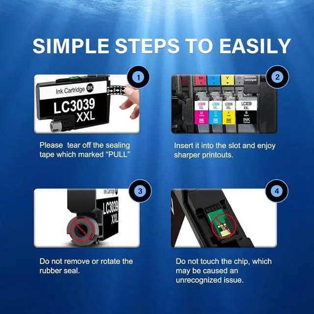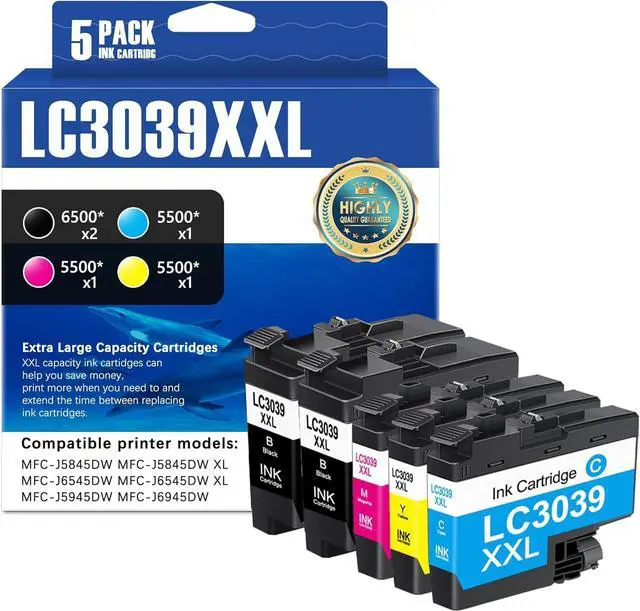 Package includes: 2 x LC3039 XXL Black Ink Cartridge, 1 x LC3039 XXL Cyan Ink Cartridge, 2 x LC3039 XXL Magenta Ink Cartridge, 1 x LC3039 XXL Yellow Ink Cartridge (Total 4 Pack) Sealed Package, Prevent Ink Leakage