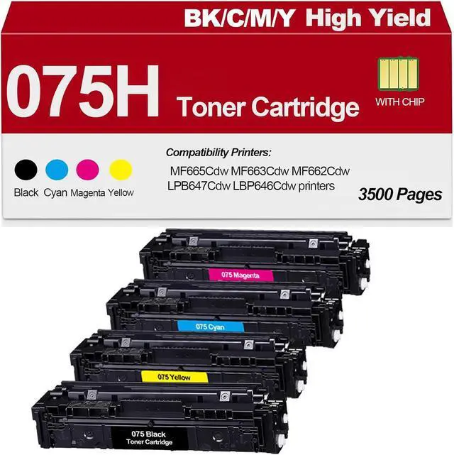 PACKAGE CONTENTS 1 x 075H Black Toner, 1 x 075H Cyan Toner, 1 x 075H Yellow Toner, 1 x 075H Magenta Toner