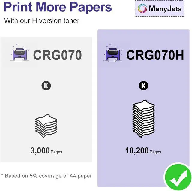 PACKAGE CONTENTS: ManyJets compatible 070 Toner Cartridge replacement for Canon 070H 070 H CRG070 CRG-070 CRG070H Toner Cartridge (With chip, 2-pack, NON-OEM)