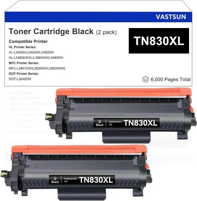 Extensive Compatibility: Our TN830XL toner cartridges work well with a wide range of Brother printers, including DCP-L2640DW, DCP-L2647DW, HL-L2460DW, HL-L2400D, HL-L2405W, HL-L2420DW, HL-L2460DWXL, HL-L2465DW, HL-L2467DW, HL-L2480DW, HL-L2865DW, MFC-L2760DW, MFC-L2807DW, MFC-L2820DW, MFC-L2820DWXL, MFC-L2900DW, MFC-L2900DWXL, MFC-L2980DW.