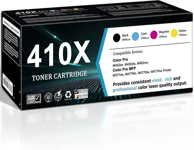 Package Contents: 410X Toner Cartridge 4-pack High-yield (Black, Cyan, Magenta, Yellow)