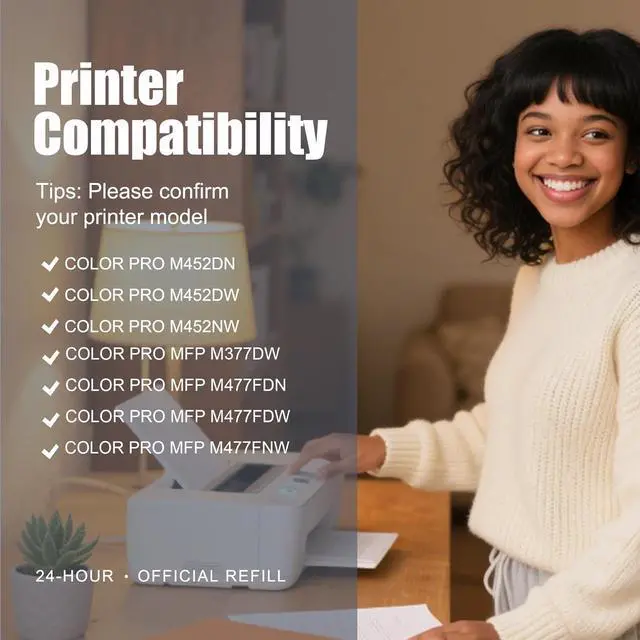 List of compatible printers: Color Pro M452dn, M452dw, M452nw; Color Pro MFP M377dw, M477fdn, M477fdw, M477fnw