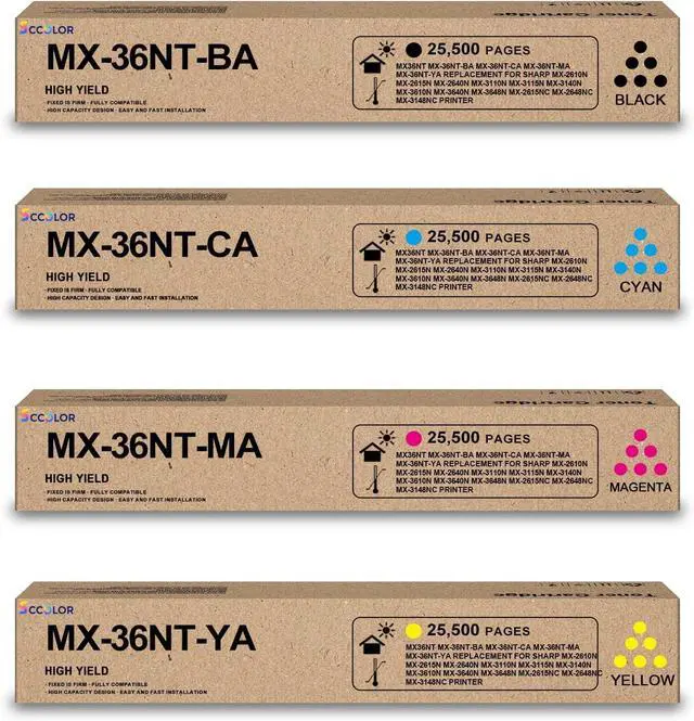 Package Contents:4 Pack MX-36NT-BA MX-36NT-CA MX-36NT-MA MX-36NT-YA Black Magenta Yellow Cyan Toner Cartridge 4 Set